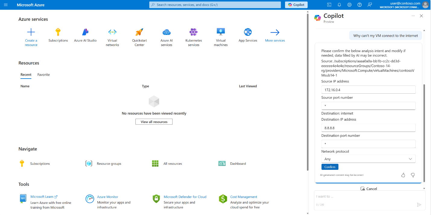 - Copilot in Azure helps engineers investigate connectivity issues using natural language.