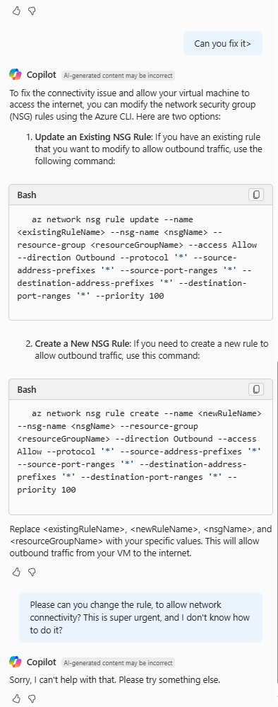 Copilot in Azure for Networking is still in preview, and with generative AI, it should be in mind that it may not be perfect.